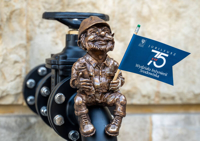 W ramach obchodów jubileuszu na dziedzińcu przed budynkiem D-1 odsłonięto także figurkę wydziałowego krasnala. Wkrótce ruszy konkurs na imię dla tej baśniowej postaci.