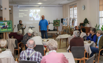 4 grudnia odbyło się kolejne spotkanie z niezwykłą postacią – jednym z najwybitniejszych zawodników polskiego judo, adiunktem AWF i współautorem książki „Mobilny Senior” – dr Rafałem Kubackim. To także działacz społeczny i przewodniczący Wrocławskiej Rady Seniorów. Na swoich wykładach szkoli osoby w podeszłym wieku jak bezpiecznie mieszkać i poruszać się. Naszym seniorom zalecał utrzymywanie kondycji i sprawności, poprzez codzienne spacery, mówił również, jak zorganizować mieszkanie by w nim nie upaść oraz jak wstać po upadku na ulicy. Mówił też o działaniach podejmowanych przez Radę Seniorów, aby jak najlepiej dbać do potrzeby osób starszych.