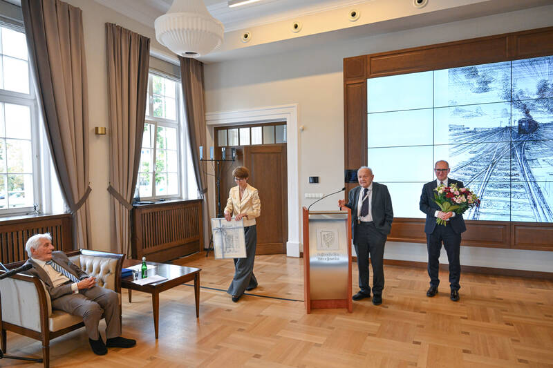 Prof. Tadeusz Zipser w swoim przemówieniu wspominał spędzony we Lwowie okres przedwojenny, działalność swojego ojca, prof. Kazimierza Zipsera, rektora Politechniki Lwowskiej oraz okres swojej pracy na Politechnice Wrocławskiej. Mówił też o swoich projektach i badaniach związanych z gospodarką przestrzenną, w tym także realizowanych już na emeryturze.
