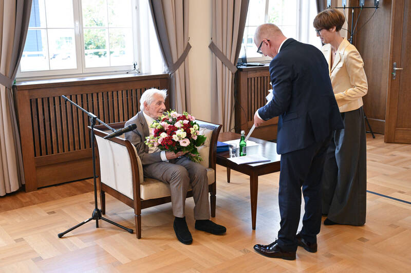 – Prof. Zipser jest człowiekiem wielowymiarowym. Nie tylko świetnym nauczycielem akademickim, wybitnie twórczym architektem, ale też malarzem, grafikiem, pisarzem i poetą. O tym, że jego ogromne zasługi zostały dostrzeżone, świadczą ordery i nagrody. Należy tu wymienić przede wszystkim Krzyż „Pro Ecclesia et Pontifice” oraz Krzyż Kawalerski i Krzyż Oficerski Order Odrodzenia Polski – mówił prof. Wiszniewski. – Drogi jubilacie, dzisiejsza uroczystość jest wyrazem wdzięczności Politechniki Wrocławskiej za twoje osiągnięcia twórcze, ale także za to, że przez całe swoje życie byłeś wzorem akademickich cnót i przyzwoitości, a nasza uczelnia jest ci niezwykle wdzięczna – dodał.