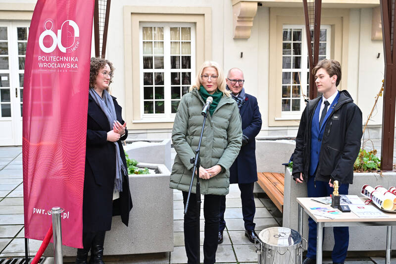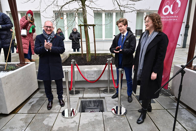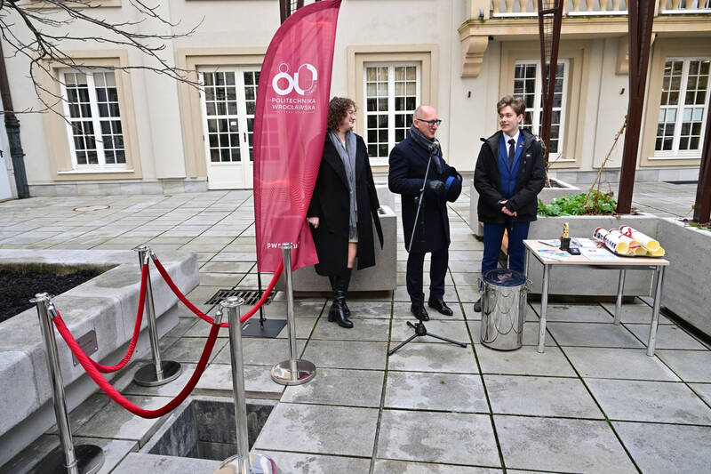 – Zakopana przez nas dzisiaj kapsuła zostanie otwarta najwcześniej za 50 lat. Mam nadzieję, że ludzie będą wtedy żyli w lepszym i bezpieczniejszym świecie niż my obecnie, a wszystko dzięki nauce i, mam nadzieję, pomysłom, które powstaną również na Politechnice Wrocławskiej – mówił prof. Wójs.