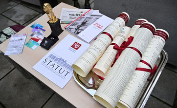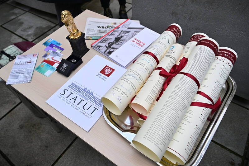 Statut uczelni, skład władz, skład Parlamentu Studentów i Rady Doktorantów, lista profesorów tytularnych, statuetka złotego lwa, kalendarium politechnicznych wydarzeń w 2025 r. to tylko część przedmiotów, które znalazły się w kapsule czasu zakopanej na dziedzińcu gmachu głównego Politechniki Wrocławskiej.