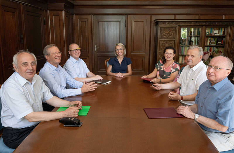 W spotkaniu wzięli udział Anna Sobolak, posłanka na Sejm RP, od początku wspierająca inicjatywę powołania Wydziału Medycznego na naszej uczelni, prof. Arkadiusz Wójs, rektor PWr, prof. Dariusz Łydżba, prorektor ds. badań i innowacji, prof. Tomasz Nowakowski, prorektor ds. informatyzacji, prof. Waldemar Banasiak, przewodniczący rady dyscypliny nauki medyczne, prof. Magdalena Krajewska, która od 1 września 2025 r. będzie pełnić funkcję dziekana Wydziału Medycznego oraz prof. Tadeusz Więckowski, pełnomocnik rektora ds. rozwoju Wydziału Medycznego.