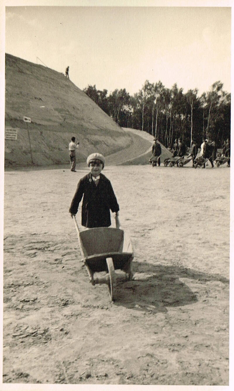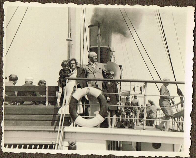 Po lewej sypię kopiec Piłsudskiego w Krakowie na Sowińcu (1935). Po prawej: te same wakacje - cała nasza rodzina na statku Orłowo-Jastarnia. Mam już zabandażowaną prawą nogę - to doprowadzi za parę tygodni do ciężkiej operacji.