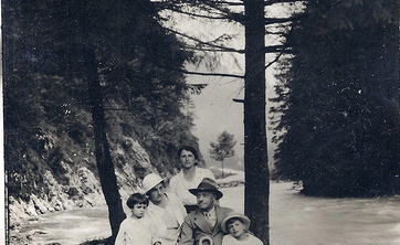 Po lewej „uroczyste” zdjęcie trzylatka. Po prawej z rodziną i nianią Milą, 1934 (rok wielkiej powodzi w Karpatach)