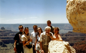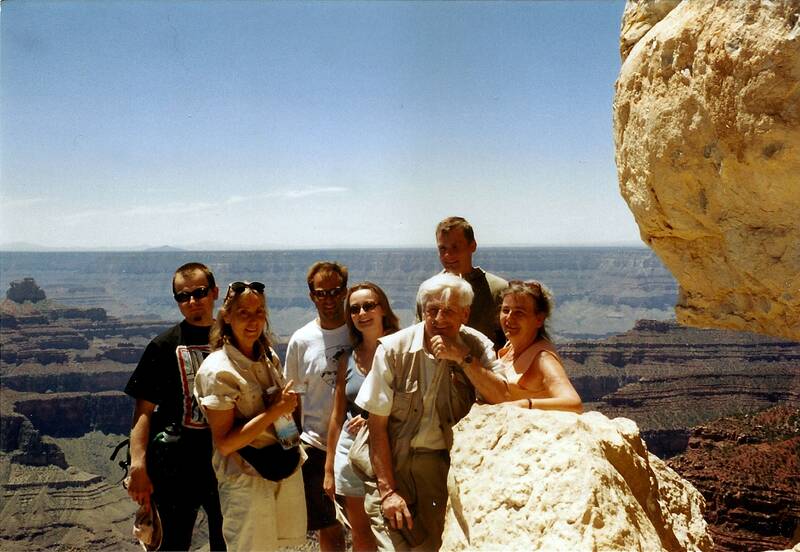 Dwa pokolenia rodziny Zipserów na brzegu Wielkiego Kanionu w Arizonie, wakacje 2001 rok. Od prawej: żona Alena, syn Wawrzyniec, córka Joanna i zięć Jeff, siostra żony Zofia i syn Jan