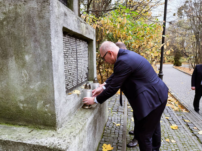 Następnie przedstawiciele obu politechnik zapalili znicze pod krzyżem i pomnikiem zamordowanych profesorów lwowskich na Wzgórzach Wuleckich. Lwowską uczelnię reprezentował prof. Volodymyr Ortynskyi, przewodniczący Senatu Politechniki Lwowskiej.