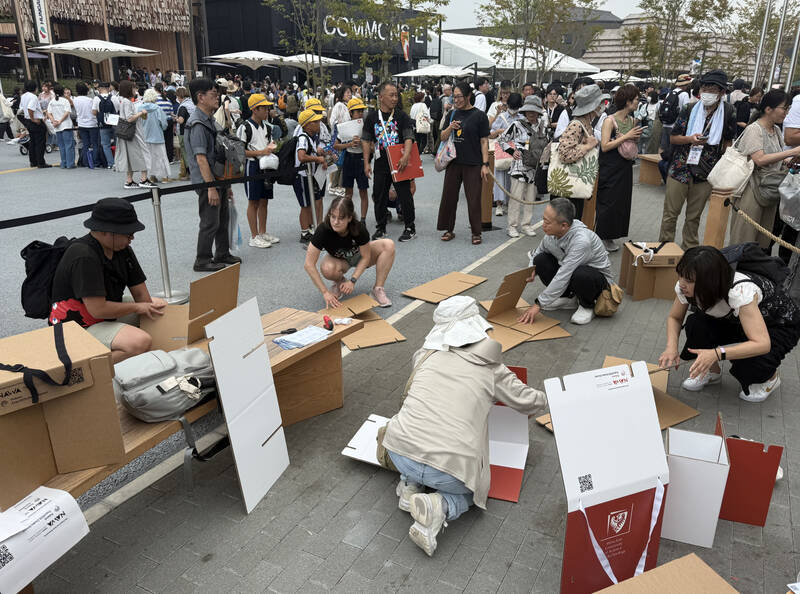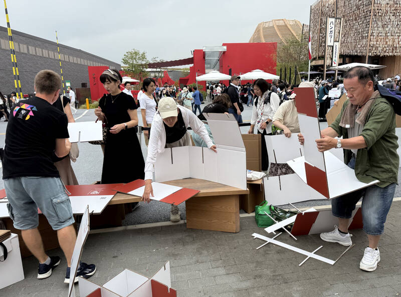 Jak je składać dowiedzieli się uczestnicy specjalnych warsztatów „Rest Area Makers – Paper in Future Architecture: from Functional Forms to Paper Buildings”, które w trakcie Expo przeprowadzał w Pawilonie Polski politechniczny zespół. Wszyscy chętni otrzymali płaskie arkusze o wymiarach 120 x 80 cm. To z nich składali, zgodnie z instrukcją, przestrzenne meble. Następnie zakładali bawełniane paski i gumki, które wzmacniały konstrukcję i sprawiały, że jest ona gotowa do użycia.