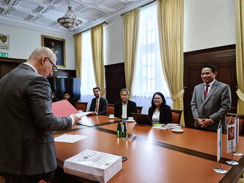 Trójstronna współpraca między uczelniami trwa od 2023 r., gdy na PWr podpisano umowę w tej sprawie. Teraz, podczas spotkania z rektorem prof. Arkadiuszem Wójsem omawiano możliwości jej poszerzenia.