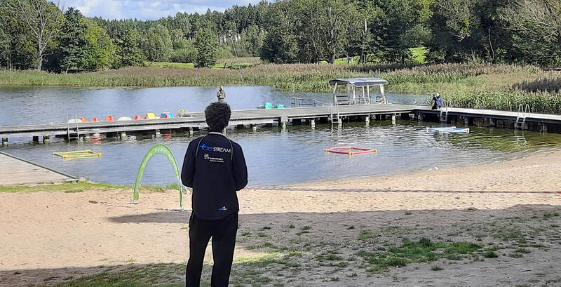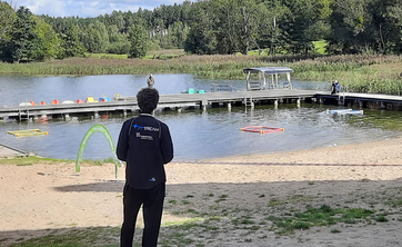 – Za pomocą systemu wizyjnego dron musiał najpierw rozpoznać i ustalić pozycję kwadratów z makaronów pływackich w kolorach czerwonym, niebieskim i żółtym, które oznaczały miejsce poboru wody na jeziorze. Po wykryciu wszystkich sędziowie wskazywali kolor, z którego dron musi pobrać wodę – mówi Michał Szewczyk, prezes AKL PWr.