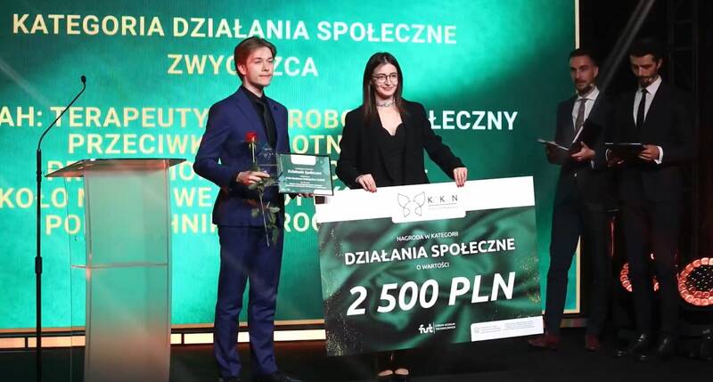 Podczas Gali Środowiska Studenckiego poznaliśmy rozstrzygnięcia w ramach ogólnopolskiego konkursu KoKoN 2025, organizowanego przez Forum Uczelni Technicznych. Jest on skierowany do studentów uczelni technicznych działających w kołach naukowych, a główną ideą jest rozwój aktywności naukowej i społecznej wraz z integracją środowiska studenckiego, propagowanie działalności naukowej oraz budowanie dialogu pomiędzy uczelniami technicznymi w Polsce i firmami zewnętrznymi.