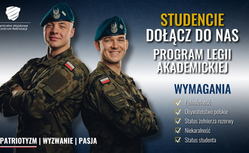 Wojskowe Centrum Rekrutacji we Wrocławiu przypomina studentom i absolwentom uczelni o możliwości realizowania ochotniczego szkolenia wojskowego w ramach programu „Legia Akademicka”.więcej